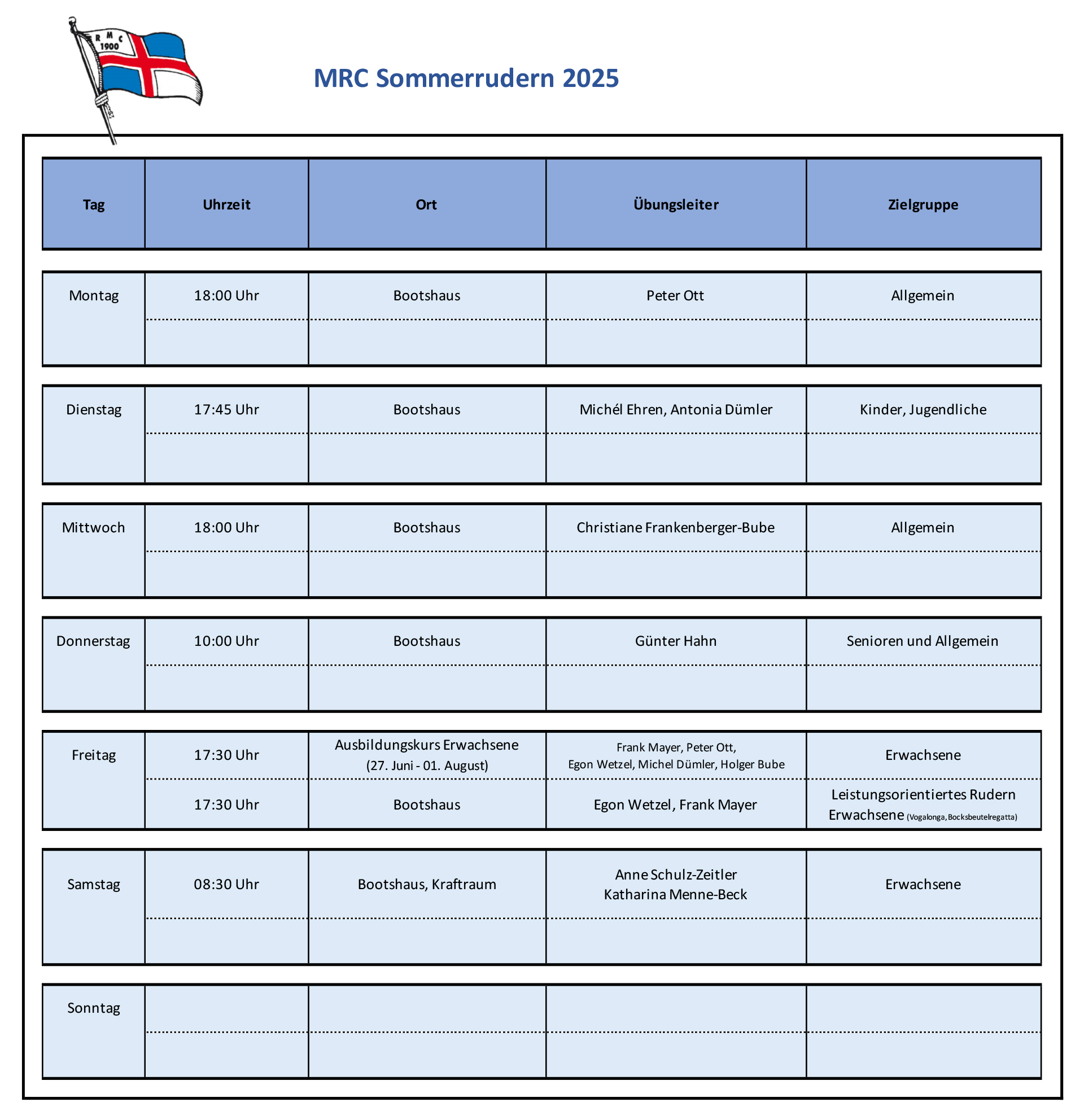 Trainingszeiten
